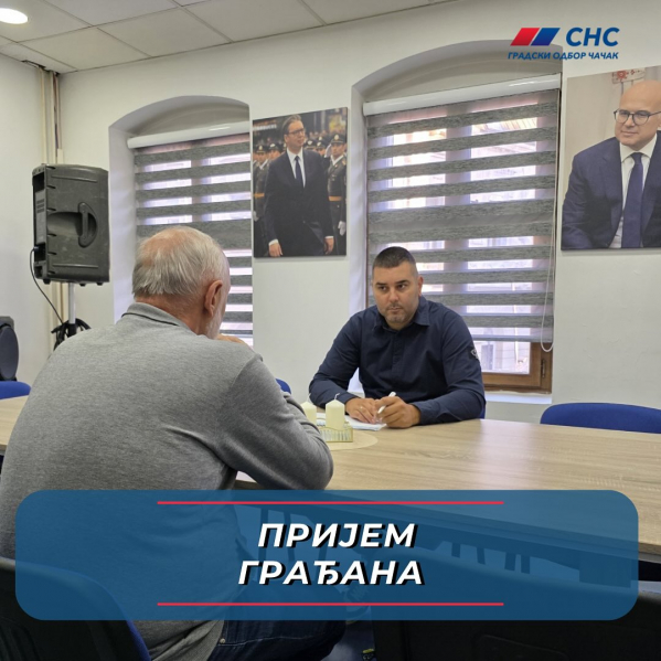 У просторијама Градског одбора СНС Чачак одржан је редован пријем грађана код повереника ГрО Милоша Стеванића. Наши суграђани имали су прилику да представе проблеме и искажу своје захтеве, али и да изнесу нове предлоге и сугестије. И у наредном периоду настављамо са праксом пријема грађана, како код повереника странке, тако и код осталих страначких функционера. Заинтересовани грађани пријем код повереника и других чланова Градског одбора могу заказати, позивом на број телефона: 032/347-807.