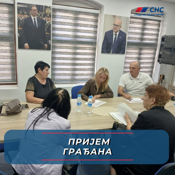 У просторијама Градског одбора СНС Чачак одржан је редован пријем грађана. На пријему су присуствовали чланови Градског одбора: Милка Владисављевић, Душица Лончаревић и Данко Ћаловић. Поред пријема код повереника ГрО, пријеми грађана викендом остају део редовних активности, јер је директан контакт веома значајан за превазилажење свакодневних изазова са којима се грађани сусрећу. Сви заинтересовани суграђани пријем грађана могу заказати позивом на број телефона: 032/347-807.