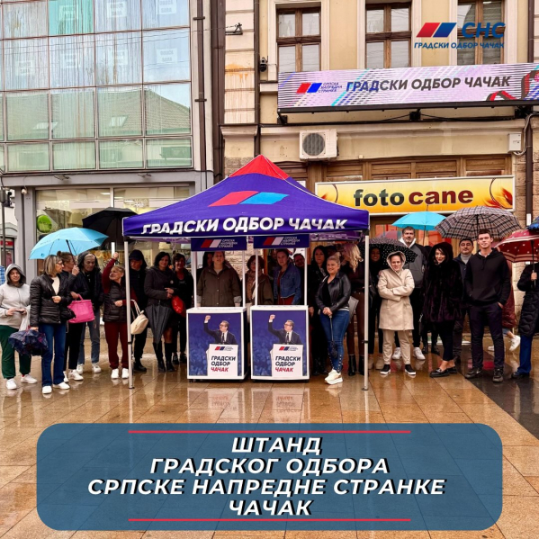 Упркос хладном и кишовитом времену, јуче је, испред просторија нашег Градског одбора, одржан штанд Српске напредне странке. Као и увек, време проведено на штанду искористили смо за разговор са нашим суграђанима. Остајемо редовно на располагању свим грађанима и у непосредном контакту са њима, како на овим и сличним активностима, тако и кроз свакодневни теренски рад. Заједнички радимо за наш Чачак!